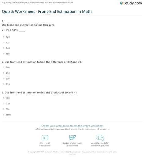 20 Front End Estimation Worksheets Worksheet From Home from sportsbizusa.com
