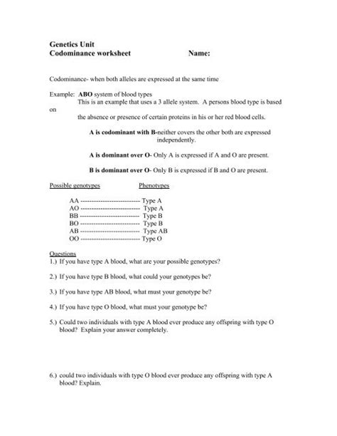One allele is not completely dominant over the other. Web codominance worksheet blood type answer key.pdf free pdf download. Worksheets are 100 points genetics punnett squares practice packet ness, incomplete.