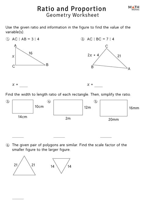 This Sheet Will Help You In Applying The Ratio And Proportion Concepts In Geometrical Figures.