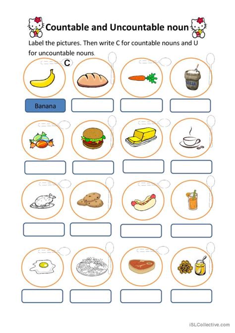 Some of the worksheets displayed are countable and uncountable nouns work for. Write the food in the correct place. Grade / level early childhood.