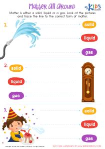 Article on the properties of matter and the differences between solids, liquids, and gases. Free interactive exercises to practice online or download as pdf to print. Matter is all around you.