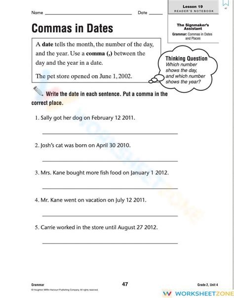 Grade 3 Commas In Dates Worksheet. Web the printable punctuation worksheets on this page can be used to teach students about using commas. Includes commas in dates, commas in lists, commas in dialogue, and.