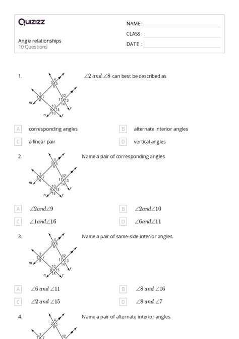 Free interactive exercises to practice online or download as pdf to print. Find the measure of angle m if angle n is the right angle. Worksheets for grade 6 through grade 8 students in this section have problems exclusively on adjacent, vertically opposite and linear pairs of angles.