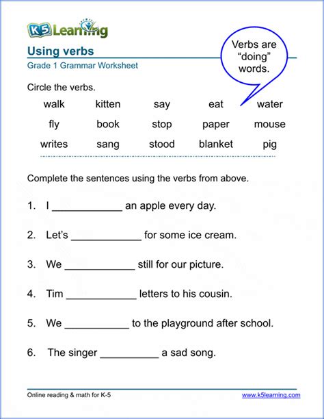 Verb Worksheets for Elementary School Printable & Free K5 Learning from www.k5learning.com