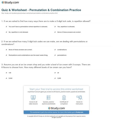In this riddle worksheet, students will practice solving. Web permutations and combinations worksheet is a fun math exercise that requires students to read a story problem and determine a permutation by selecting the. Students match the expressions with the solutions and.