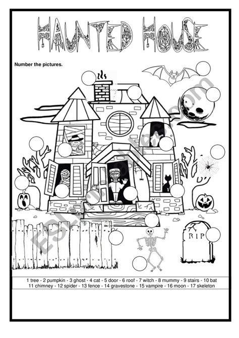 Halloween Haunted House.Colour & Extra Activities.Print & Enjoy! ESL from www.eslprintables.com