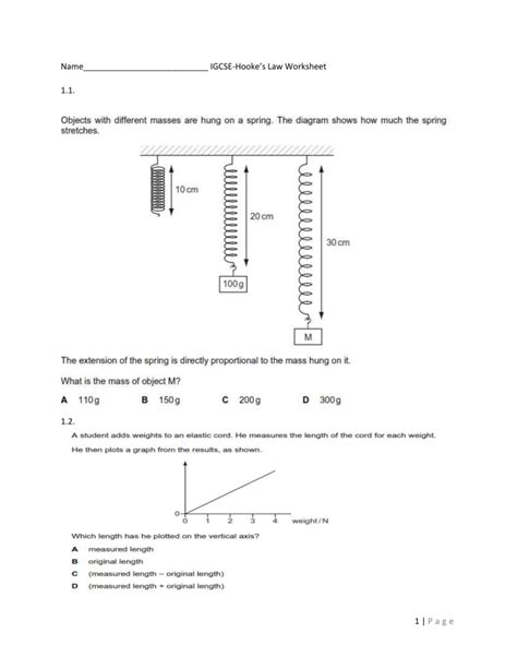 Hookes Law Worksheet. This worksheet is perfect as a homework activity. Web this hooke's law resource prompts your ks3 students to investigate how the force applied to a spring affects its extension. within the lesson powerpoint students are guided.