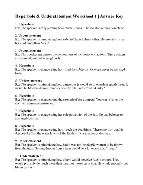 Hyperbole and Understatement Worksheet 1 Answers from www.ereadingworksheets.com