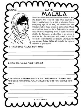Reading Comprehension Malala Yousafzi worksheet Free ESL printable from www.pinterest.com.mx