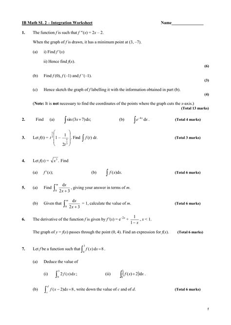 Ib Math Sl Integration Worksheet. A gradient function is given by. Sl5.5 and sl5.8, related to integration.